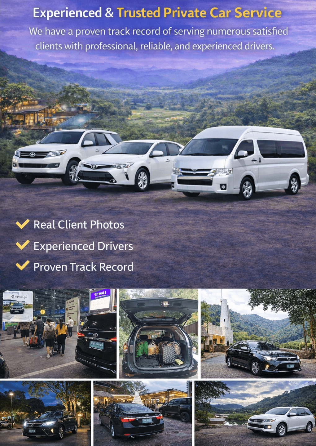 Continue Browsing TripsWe provide car transfer and charter services across Thailand, covering popular destinations such as Khao Yai, Kanchanaburi, Hua Hin, Pattaya, Bangkok, and Ayutthaya. We also offer pre-planned tour programs for travelers who wish to explore well-known attractions with ease and comfort.